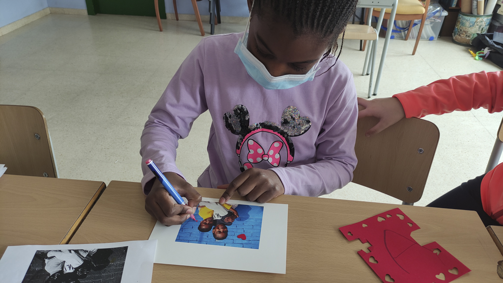 Tot seguit vam plantejar la reflexió de com ens cuida la família, i en el cas de 6è, com es pot cuidar un mateix. Amb les frases o paraules sorgides començava una nova proposta, aquesta vegada de la mà de la fotògrafa i educadora Wendy Ewald. Es tractava que cadascú pensés com representar amb una fotografia aquella paraula o frase escollida i que un cop feta es pogués manipular a partir de tècniques com el collage o dibuixant a sobre de la imatge..., representant d’una manera molt visual i personal com ens cuiden les nostres famílies.
