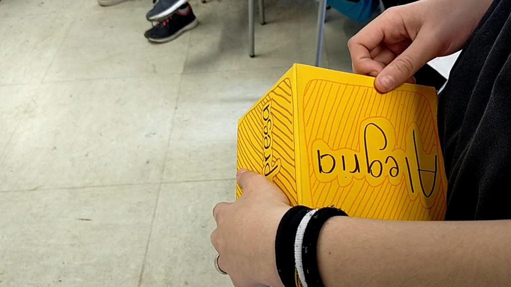 Els grups de primer cicle van optar per una aproximació, a través de la ficció, de la cura. A 1r d’ESO, a partir de les cures reals i metafòriques de la pel·lícula de Miyazaki, La princesa Mononoke, van dissenyar de forma col·laborativa un còmic sobre la cura. A 2n d’ESO, en canvi, van idear, per tal de solucionar mals que veien al seu voltant, medicaments que haurien de curar-los (capsa, comprimits, prospecte, etc.).