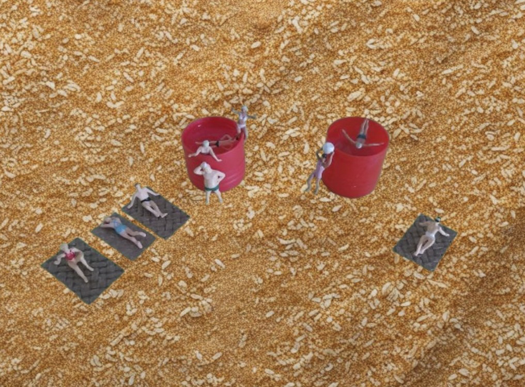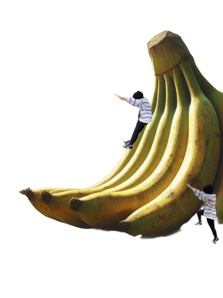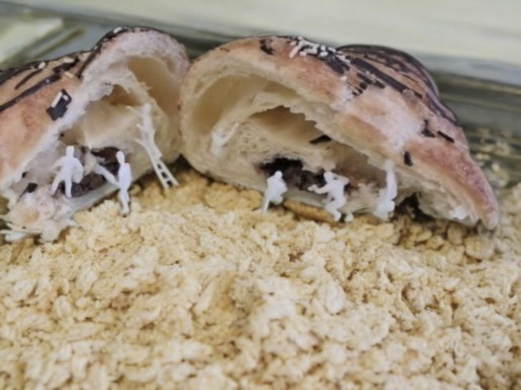 En aquesta primera proposta, hem creat escenes utilitzant objectes reals, com una poma, un croissant de xocolata o un alvocat. Fotografiant-los en primer pla i incorporant figures humanes a escala 1:85, hem aconseguit recrear situacions que ens transporten a un univers imaginari de personatges lil·liputians.